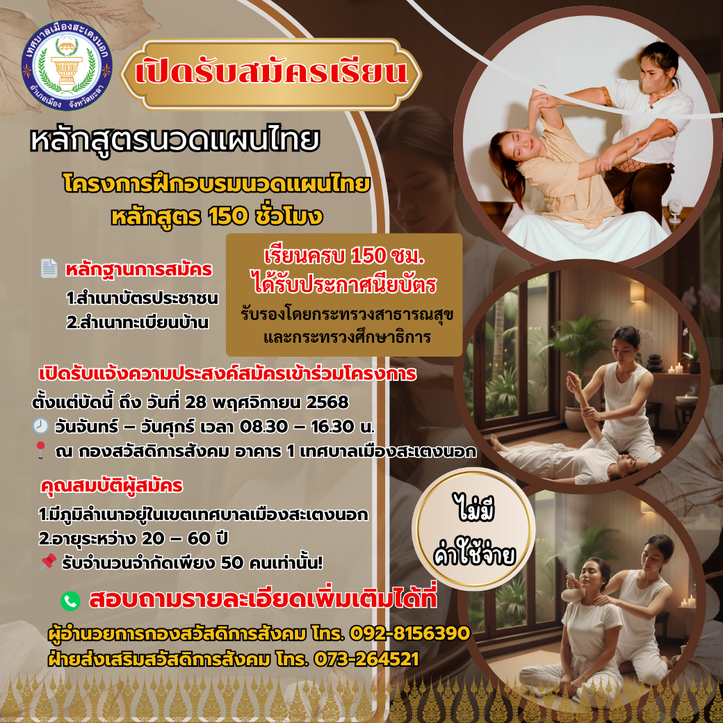 วันที่ 19 สิงหาคม 2568 เทศบาลเมืองสะเตงนอกเดินหน้าสร้างโอกาสให้พี่น้องในชุมชน จัดกิจกรรม ฝึกอบรมแปรรูปผลิตภัณฑ์จากไข่เป็ดและการบรรจุผลิตภัณฑ์ ภายใต้โครงการ ส่งเสริมอาชีพผู้ด้อยโอกาส ประจำปีงบประมาณ...
